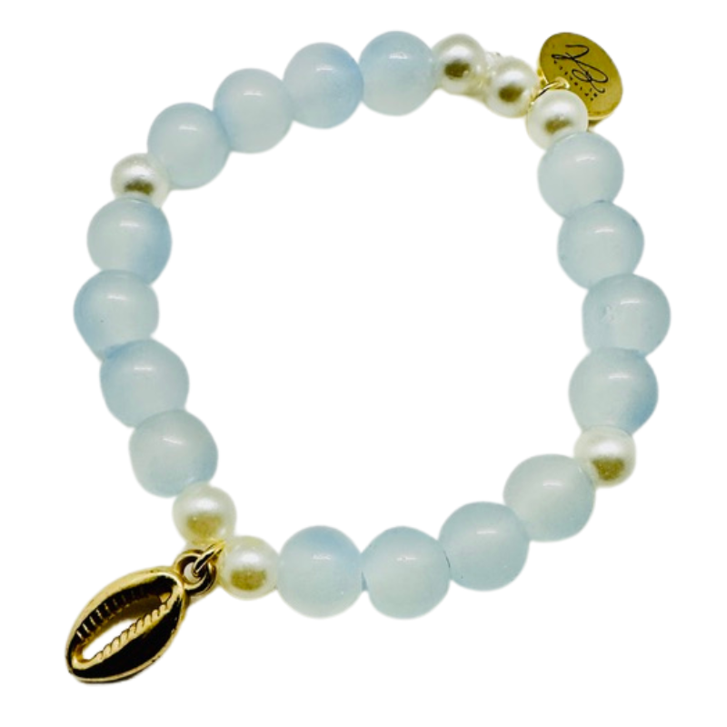 Bring a touch of the beach to your style with our Ocean Breeze Bracelet. Featuring cool blue beads and delicate white pearls, this bracelet is completed with a charming gold-tone seashell charm. The soft colors and seaside-inspired design make it the perfect accessory for summer adventures or as a reminder of sunny beach days all year round. Features: